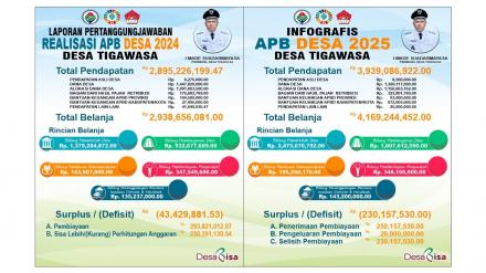 Laporan pertanggung jawaban dan APB Desa tahun 2025 terpasang diarea terbuka yang sering dilalui masyarakat sebagai bentuk transfaransi Pemerintah Desa Tigawasa terhadap masyarakat